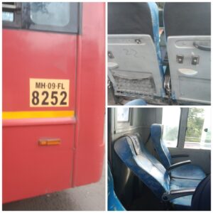 рдЧрдбрд╣рд┐рдВрдЧреНрд▓рдЬ рддреЗ рдХреЛрд▓реНрд╣рд╛рдкреВрд░ рдзрд╛рд╡рдгрд╛рд▒реНрдпрд╛ рдПрдордПрдЪ-09 рдПрдлрдПрд▓ 8252 рдпрд╛ рдПрд╕рдЯреА рдмрд╕рдЪреА рдЕрд╡рд╕реНрдерд╛ рдЕрддреНрдпрдВрдд рджрдпрдиреАрдп рдЭрд╛рд▓реА рдЖрд╣реЗ. рдмрд╕рдордзреАрд▓ рд╕реАрдЯреНрд╕рдЪреА рдЕрд╡рд╕реНрдерд╛ рдкрд╛рд╣рддрд╛ рдкреНрд░рд╡рд╛рд╢рд╛рдВрдирд╛ рд╕реБрд░рдХреНрд╖рд┐рдд рд╡ рдЖрд░рд╛рдорджрд╛рдпреА рдкреНрд░рд╡рд╛рд╕ рдХрд░рдгреЗ рдЕрд╢рдХреНрдп рдЭрд╛рд▓реЗ рдЖрд╣реЗ.