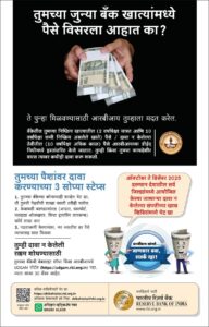 RBI рдиреЗ рдпрд╛ рд╕рдВрджрд░реНрднрд╛рдд тАШрдЙрджреНрдЧрдо рдкреЛрд░реНрдЯрд▓тАЩ (https://udgam.rbi.org.in) рд╕реБрд░реВ рдХреЗрд▓реЗ рдЕрд╕реВрди, рдпрд╛ рдкреЛрд░реНрдЯрд▓рд╡рд░ рдЖрдкрд▓реЗ рдХрд┐рдВрд╡рд╛ рдЖрдкрд▓реНрдпрд╛ рдХреБрдЯреБрдВрдмрд╛рддреАрд▓ рд╕рджрд╕реНрдпрд╛рдВрдЪреЗ рдирд┐рд╖реНрдХреНрд░рд┐рдп/рд╡рд┐рд╕рд░рд▓реЗрд▓реЗ рдЦрд╛рддреЗ рд╢реЛрдзрддрд╛ рдпреЗрддреЗ.