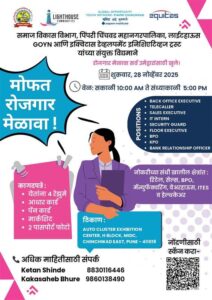 पिंपरी चिंचवड प्रतिनिधी :पिंपरी-चिंचवडमध्ये उद्या 28 नोव्हेंबर 2025 रोजी मोठ्या प्रमाणावर रोजगार मेळाव्याचे आयोजन करण्यात आले असून नोकरी शोधणाऱ्या युवक-युवतींसाठी ही सुवर्णसंधी मानली जात आहे. हा रोजगार मेळावा समाज विकास विभाग, पिंपरी चिंचवड महानगरपालिका, लाइटहाउस कम्युनिटीज, GOYN आणि इक्विटास डेव्हलपमेंट इनिशिएटिव्ह ट्रस्ट यांच्या संयुक्त विद्यमाने आयोजित करण्यात आला आहे.
