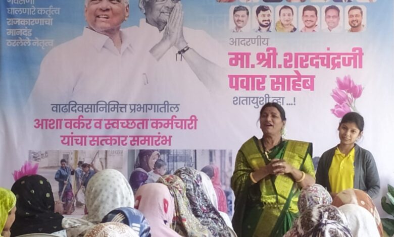 मा. शरदचंद्र पवार यांच्या वाढदिवसानिमित्त आशा वर्कर व सफाई कर्मचाऱ्यांचा सत्कार