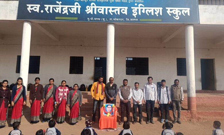 पारध शाहूराजे तालुका भोकरदन येथील स्वर्गीय राजेंद्रजी श्रीवास्तव इंग्लिश स्कूल कनिष्ठ व वरिष्ठ महाविद्यालयाच्या प्रांगणात भारतीय संविधानाचे शिल्पकार, भारतरत्न डॉ. बाबासाहेब आंबेडकर यांच्या महापरिनिर्वाण दिनानिमित्त अभिवादन कार्यक्रमाचे आयोजन करण्यात आले.