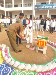 पारध बु. ( महेंद्र बेराड, भोकरदन तालुका प्रतिनिधी जि. जालना) येथील स्व. राजेंद्रजी श्रीवास्तव इंग्लिश स्कूल, कनिष्ठ व वरिष्ठ महाविद्यालय येथे भारताचा ७७ वा प्रजासत्ताक दिन मोठ्या उत्साहात साजरा करण्यात आला. यानिमित्ताने शाळेचे प्रांगण विविध फुलांनी आकर्षकपणे सजविण्यात आले होते.