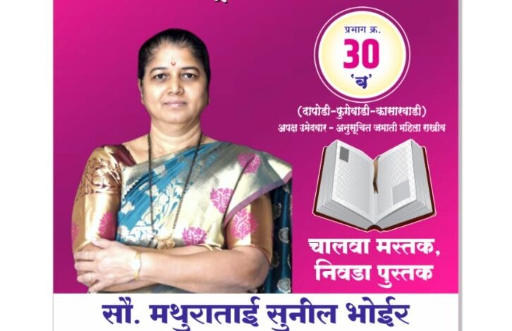 आगामी महानगरपालिका निवडणुकीसाठी प्रभाग क्रमांक ३० (ब) मधून मथुराताई सुनिल भोईर यांनी निवडणूक मैदानात अधिकृतपणे प्रवेश केला असून, त्यांनी प्रभागाच्या सर्वांगीण विकासासाठी ‘विकासाची दहा सूत्रे’ असा ठोस आणि लोकाभिमुख जाहीरनामा जाहीर केला आहे.